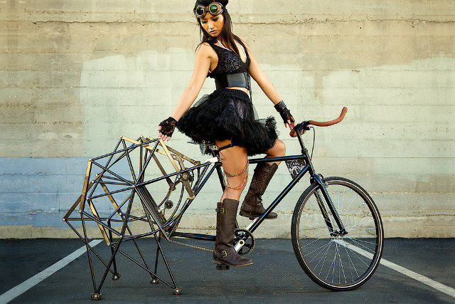 カリフォルニアのアート集団 CARV (Californian art and engineering collective) が制作したというクモ型自転車。なにこれ、乗れるの?